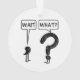 Espera, Qué. Ilustracion de una coma y un signo de interrogación. Un tono gracioso exclamó cuando alguien de repente se da cuenta de que algo no está bien. La coma espera, pregunta el signo de interrogación. ¿Lo entiendes?