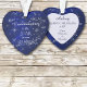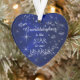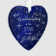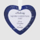 ¡Nuestro adorno navideño nieta más vendido se ha actualizado este año! Tiene una estrella plateada y un patrón de copos de nieve contra un fondo de gradiente azul profundo. En el centro está tu texto personalizado en blanco. Dice: "Nuestra nieta es la ESTRELLA en nuestros CORAZONES. La parte posterior del adorno tiene la estrella plateada y el fondo azul como borde, con un interior de corazón blanco que sostiene el texto personalizado a juego con el azul. Este es un adorno conservador que tu nieta siempre atesorará.