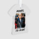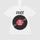 Crea un adorno de keepsake para recordar la primera fiesta de cumpleaños de tu pequeña estrella de rock. Este único adorno con forma de camiseta personalizada tiene un estilo de concierto de rock and roll y cuenta con una foto en la parte delantera y una imagen de vinilo personalizado en la parte trasera junto con el año. Un gran regalo de vacaciones para los miembros de la familia o un favor de fiesta para un primer cumpleaños de rockin. ¡Una Roca! Mostrado en blanco. Se puede personalizar todo el texto y la mayoría de los colores.