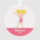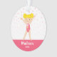 Un adorno navideño personalizado chica de gimnasia. Con un ilustracion de gimnasta rubia vestido con un traje rosado. === ANTES de realizar su pedido, póngase en contacto con el diseñador para CAMBIOS GRATUITOS DE COLOR (color uniforme, color del cabello, color de piel y color de fondo). == GRÁFICOS por Ilustraciones JW © JESSICAWEIBLE.COM