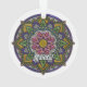 Mandala color púrpura, dorado y verde con centro rosado rodeado de fondo blanco, incluida la plantilla de monograma de nombres para personalizar.