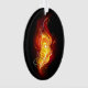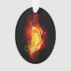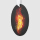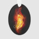 Una brillante pluma de pavo real hecha de fuego y llama sobre fondo negro.