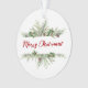 Brillante Ornamento de Saludo con Encanto Verde y Rojo con ramas de pino del árbol de Navidad Evergreen, conos, bayas y la frase de personalizable "Feliz Navidad" puedes cambiarte a "Feliz Año Nuevo" o "Felices Fiestas" y otros. Más Navidades destacados Deseando tarjetas que puedes encontrar en mi tienda Zazzle PatterndígitoPics o escribirme por correo electrónico a t.dyomushkina@gmail.com, si necesitas un diseño especial.