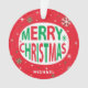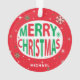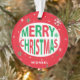 Feliz Navidad Moderno Festividad Roja Los Ornamentos Personalizados presentan una moderna Navidad Feliz en verde y rojo, con acentos de copos de nieve y personalizado con tu nombre a continuación. Personalice editando el texto en el cuadro de texto proporcionado. Diseñado por ©Evco Holidays www.zazzle.com/store/evcoholidays