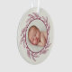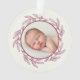 Este hermoso ornamento muestra tu foto con un delicado marco en ciruela sobre un fondo de color marfil.
