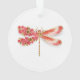 Dibujado artísticamente, dorado, libélula con joyas de color rojo y alas decoradas con rojo, floreciente, cerezo japonés con joyas sobre fondo blanco. Dragonfly de oro.