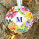 Bonito rosa, amarillo y morado acuarela flores de arte floral adorno navideño. Añadir inicial en el área personalizada.