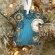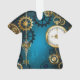 fondo turquesa, texturado, de vapor punk con bronce y oro, llave de plata y reloj. Estilo Steampunk.