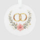 Diseño de boda romántico que presenta anillos de oro en forma de corazón, rosas suaves de acuarela y elegante letra que dice "Por siempre y siempre". Regalo de boda perfecto para novia y novio, recuerdo de aniversario, decoración para recién casados, o regalo para la ducha de novia. Ideal para tazas, almohadas, tarjetas y más.