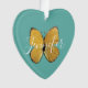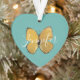 El ornamento con forma de corazón de mariposa amarilla personalizada es un diseño moderno con una gran mariposa amarilla de bonito centrada en el fondo verde azulado de personalizable pastel. Puede cambiar el fondo a cualquier color. El nombre está en la escritura manuscrita blanca de moda en el centro. El diseño está a ambos lados del adorno. ¡Idea de regalo perfecta para un amante de las mariposas o jardinero!