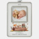 El primer ornamento navideño de este lindo bebé tiene animales de bosque, incluyendo un zorro, conejo conejo, búho y oso. El adorno puede ser fácilmente personalizado con el nombre, fecha y foto del bebé. El diseño es sencillo y caprichoso, con animales de bosque dispuestos alrededor de un tronco de árboles. El adorno es perfecto para celebrar la primera Navidad del bebé y será un querido placer en los años venideros.