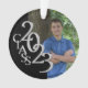 Ornamento de fotos en negro y plata para graduados de la clase de 2023 con un lugar para hasta dos fotos o una sola imagen y añadir texto al otro lado.