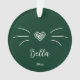 Adorno de gato verde personalizado lindo. Un lado tiene bigotes de gato lindos y el nombre del gato en letra cursiva. El dorso tiene tu foto favorita de tu gato.