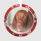 Crea tu propio adorno de mascota esta temporada navideña con este diseño festivo. Cuenta con una imagen de tu mascota y un fondo rojo brillante falso decorado con copos de nieve blancos. Simplemente personaliza subiendo tu propia foto y personaliza con el nombre de tu mascota utilizando la plantilla proporcionada.