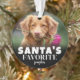 Adorno de foto de perro personalizado "El favorito de Santa". Agregue un toque de alegría y humor navideño a su decoración con este divertido adorno, perfecto para mostrar la adorable personalidad de su cachorro. La parte delantera presenta el texto festivo "El favorito de Santa" junto con el nombre de su perro, lo que añade un toque divertido para celebrar a su amigo peludo. También hay espacio para incluir una foto favorita de su perro para un toque personal. La parte trasera muestra un diseño de huella de pata con un recorte en forma de corazón en el centro para un detalle dulce. Tanto el color de la fuente como la huella de pata se pueden personalizar para que coincidan con su estilo. Este recuerdo es un regalo maravilloso para los amantes de los perros, ideal para las fiestas, cumpleaños o simplemente porque sí. ¡Una forma divertida de celebrar el encanto de su cachorro,