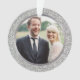 Este moderno ornamento de fotos de vacaciones presenta un hermoso marco de Relieve metalizado de purpurina plateado falso alrededor de una foto redonda. La parte posterior tiene el mismo fondo purpurina plateado y el texto de la parte posterior es completamente personalizable. Los adornos personalizados son un regalo atento y elegante para amigos y familia. Los adornos de fotos también hacen un maravilloso recuerdo para recordar una foto, ocasión o persona especial.