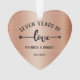 7.º aniversario de boda adorno con la mirada de cobre tradicional para celebrar los 7 años de unión de la pareja. El cobre es el regalo tradicional que se da por sétimo aniversario de bodas.