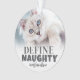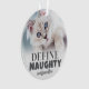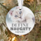 Adorno de foto de gato personalizado "Definir Travieso". Agrega un toque de humor a tu decoración navideña con este divertido adorno de gato, perfecto para aquellos con un gatito travieso o gata sassy. La parte delantera presenta el texto juguetón "Definir Travieso" junto con el nombre de tu gato, capturando la personalidad descarada de tu felino. También hay espacio para una foto de tu gato para agregar un toque personal. La parte trasera muestra un diseño de huella de pata con un recorte de corazón en el centro, lo que lo hace extra especial. Tanto el color de la fuente como la huella de pata se pueden personalizar para adaptarse a tu estilo. Este recuerdo humorístico es perfecto para los amantes de los gatos, lo que lo convierte en un regalo divertido para las fiestas, cumpleaños o simplemente porque sí. ¡Una excelente manera de mostrar el lado travieso de tu gat