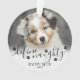 Celebra el humor de la temporada navideña con este divertido adorno para mascotas "Define Naughty", perfecto para capturar la personalidad única de tu mascota. La parte delantera tiene espacio para una foto favorita de tu amigo peludo, acompañada de la descarada frase en elegante letra cursiva, junto con su nombre y el año para un toque personalizado. En la parte trasera, "Merry Christmas" aparece en una simple letra cursiva, manteniendo el aspecto festivo y divertido. Los acentos de huellas de patas y un efecto ombre blanco suave añaden calidez al diseño, y tanto el color de la letra como el de las huellas de patas se pueden personalizar para adaptarse a tu estilo. Ideal para amantes de las mascotas con sentido del humor, este adorno es una adición caprichosa a tu árbol o un regalo considerado para otros dueños de mascotas.
