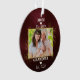 esta plantilla de ornamento acrílico es idéntica en ambos lados, con un fondo acuático abstracto de color rojo burdeos profundo, un lugar para su imagen, aburrido con un marco dorado, y brillantes líneas florales de Relieve metalizado metálico dorado, así como texto de personalizable con MOM y GRANDMA que ofrecen años/fechas determinados atribuidos