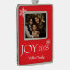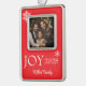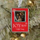 Framed photo ornament is shown in silver tone metal with a red color background and a sample photo, customize this ornament and just change the photo to your own great photo and change the text if you wish with this template.
