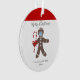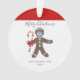 ¡No te dejes llevar por los Navidades 2020! Echa un vistazo a este adorno personalizado de Gingerbread Man. Este diseño moderno tiene un lindo hombre de jengibre con una máscara y sostiene un bastón de caramelo. El saludo es "Feliz Navidad" en el moderno tipo de letra con letras a mano seguido del apellido de la familia y el año personalizado. Hace una idea de regalo perfecta para mantener este año con la pandemia del coronavirus covid-19. Haga clic en la opción personalizar plantilla y siga el mensaje.