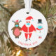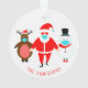 Ornamento festivo de Navidades divertidos para conmemorar un año de cuarentena y distanciamiento social con un retro de cadera, Santa Claus, un muñeco de nieve y un reno con máscaras en la cara. Puede personalizar el texto "Navidades 2020" por un lado y el nombre por el otro.