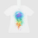 Grandes medusas de azulejo brillantes, de dibujos artísticos, con largos tentáculos en blanco, pintadas con fondo multicolor de acuarela. Mariscas arcoiris.