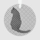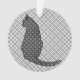 Imagen digital de medios mixtos de un gato sentado de inspiración japonesa, con un estilo floral estilizado, contra un fondo impreso kimono - Negro y blanco con tonos gris plateado / gris