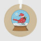 Un ilustracion de un globo de nieve con un tierno cardenal rojo usando una red santa claus bajo la nieve en un cielo azul brillante. Este bonito diseño de globo acuático para navidades personalizados es un regalo para los amantes de las vacaciones invernales y los amantes de las aves y los animales.