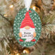 Gnomo lindo con sombrero de Santa y letrero de Feliz Navidad, editar nombre en la parte posterior