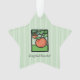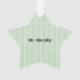 Gracias a tu profesor de inglés con este adorno de manzanas. El fondo muestra rayas verdes pálidas que apoyan la manzana en la parte delantera.