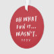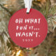 ¿Qué divertido es? No. No este año con cosas como problemas de salud, desastres naturales y más. Así que es más como "Oh, lo divertido que no fue." Este divertido y sarcástico adorno de vacaciones en rojo y blanco es la manera perfecta de conmemorar el año (no es que pronto te olvides). Con un punto detrás para una foto, este adorno navideño hace un regalo divertido para la familia o amigos. Al menos puedes mirar hacia atrás y reír (¡ojalá!).