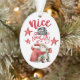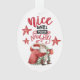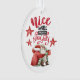 El anverso de este ornamento declara "Niza hasta probada traviesa" en texto rojo y negro estilizado. Debajo del texto se encuentra una sabia Santa Cláusula con un abrigo rojo y unas piernas rayadas verdes, sosteniendo una taza de su bebida favorita. Al lado del texto hay estrellas rojas. La parte posterior del adorno tiene el texto de su personalizado en dos campos, y otra imagen de Santa Claus. Único y bonito.