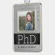 Un adorno para graduados de doctorado fotográfico con un tono plateado (no Relieve metalizado) y un esquema de color negro. Muestra el grado, nombre y año. Simplemente agrega tu foto e información, agrega este ornamento a tu carrito, y ten un gran logro. Foto Plata Color Nombre Negro Graduación PhD Diseño navideño Ornamento Festividad | ©Melissa Patton - Designer<i>Photography © Storytree Studios, Stanford, CA</i>