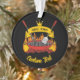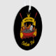 Parrilla barbacoa sobre carbón vegetal en llamas, banner de desplazamiento con texto personalizado sobre el tenedor y la espátula. Color de fondo personalizado. Texto personalizado en ambos lados.