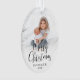 Celebra las simples alegrías de las festividades con un personalizado Feliz Navidad dos ornamentos ovalados acrílicos. Las imágenes y todos los textos de esta plantilla son fáciles de personalizar y pueden ser diferentes o iguales en el frente y en el reverso. El moderno diseño minimalista en blanco y negro incluye caligrafía de escritura a la moda, tipografía clásica elegante y 2 fotos de su elección. Este único toque vacacional añade un toque elegante a la decoración de casa de Navidad. Feliz Navidad!