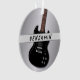 Ornamento de guitarra redonda para un muchacho adolescente. Plata y negro con guitarra eléctrica en la parte delantera. Revertir es negro sólido con fuente gris claro y angustiada. Incluya su nombre y año, o su elección.