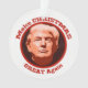 ¡Acá hay un gracioso adorno de Navidad que a cualquier Trump le encantaría! Tiene un retrato artístico de Donald Trump en una frontera circular de marco rojo. El texto curvado encima y debajo de la imagen dice "Hagan que los NAVIDADES vuelvan a ser GENIAL". La parte posterior del adorno tiene la misma imagen en un fondo negro con texto blanco. Puedes personalizar el texto de la parte de atrás, si quieres. ¡SABES que conoces a alguien que quiere esto!