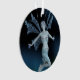 Representación 3D de un hermoso hada de invierno sobre un fondo de cielo de fantasía