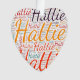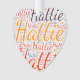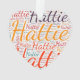 Hattie. Mostrar y llevar este popular y hermoso nombre femenino diseñado como colorido nube de palabras hecho de tipografía de letras horizontales y verticales cursivas a mano en diferentes tamaños y adorables colores frescos. Usa tu nombre estadounidense positivo o muestra al mundo a quien amas o adoras. Mercar con este suave trabajo de texto es un gran regalo, no sólo en el mes de la historia de las mujeres, o regalo de cumpleaños.
