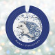 Este bonito erizo júnior está decorado con telas de color azul floral Chinoiserie, similar a los azulejos azules delft y portugueses. El erizo, las flores y los árboles se imprimen en un suave azul real y están rodeados de un marco azul. Las palabras "Feliz Navidad" aparecen debajo en plata, y usted puede editar este texto si lo desea, siempre y cuando se ajuste al área que se proporciona.