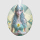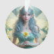 Un hermoso hada de cabello azul con alas amarillas pálidas con un vestido de color bonito aqua y un collar aguamarina sostiene un único daffodil mientras se encuentra en un campo de daffodils. El texto puede cambiarse o eliminarse fácilmente si desea que la imagen no tenga texto.