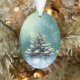 Adorno Hermoso árbol de Navidad con nieve y luces doradas