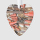 Colección de herramientas antiguas manipuladas de color rojo en una mesa de un mercadillo.