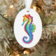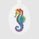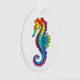 Arco de arcoiris, caballito de mar poligonal sobre fondo blanco. Tatuaje brillante.
