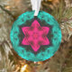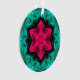 Este diseño psicodélico del caleidoscopio presenta un vibrante color rosa y verde azulado.