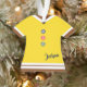 La figura de la camiseta del hombre de pan de jengibre, recortada con botones de gota, muestra el nombre de tu ser querido. En la parte trasera está la frase "Navidades 20XX". Personalice con su nombre, el nombre de sus seres queridos o el nombre de su mascota... y el año, siguiendo el enlace "Personalizar esta plantilla".