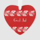 Diseño festivo en rojo y blanco con grilletes blancos. Viene con el texto " Dios Jul" - significa Feliz Navidad en sueco y en otros idiomas escandinavos también. Puedes personalizar ahora con tu propio texto . Ornamento acrílico en forma de corazón. Diseño frontal y posterior.