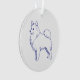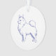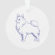Klassisches Design in Blau-Weiß. Blaue Linienzeichnung der Hunderasse Spitz auf weißem Untergrund.
